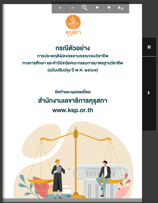 หนังสืออิเล็กทรอนิกส์ “กรณีตัวอย่างการประพฤติผิดทางจรรยาบรรณของวิชาชีพทางการศึกษา และคำวินิจฉัยคณะกรรมการมาตรฐานวิชาชีพ” (ฉบับปรับปรุง ปี พ.ศ. 2567)